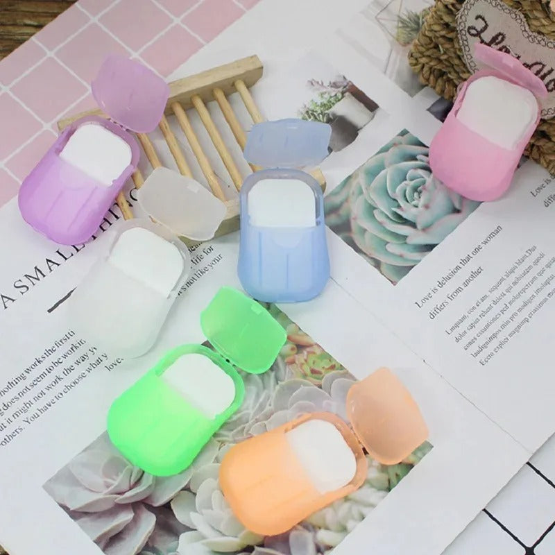 20pcs Portable Disposable Soap Paper Mini Portable Travel Soap Paper Sheets Hand Washing Bath Toiletry Paper Soap for Outdoor, Camping Hiking