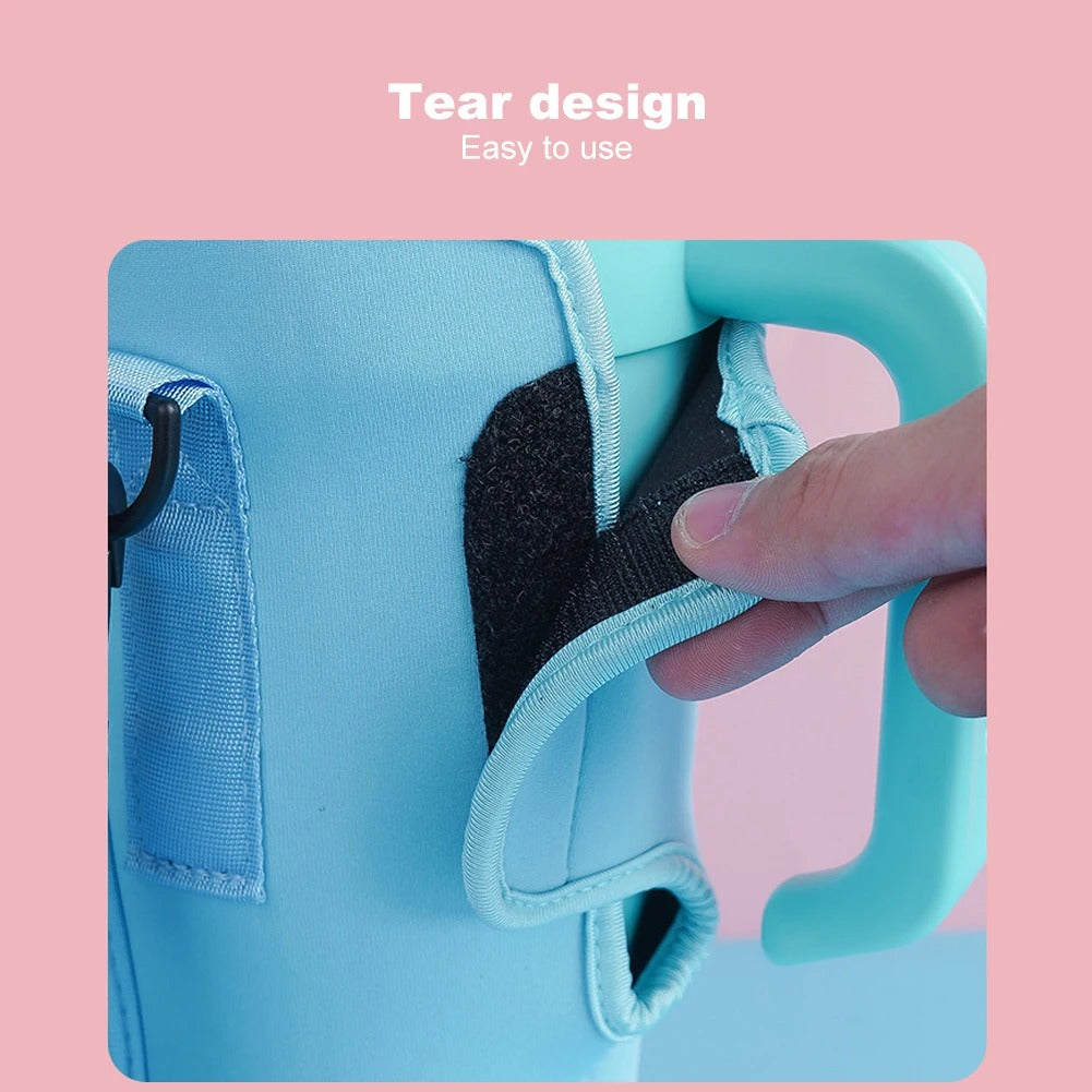 Carry your 40oz water bottle in comfort and style with this Neoprene Water Bottle Carrier Bag. Perfectly designed for Stanley Quencher Cups and similar bottles, this soft yet durable sleeve keeps your drink secure wherever you go.