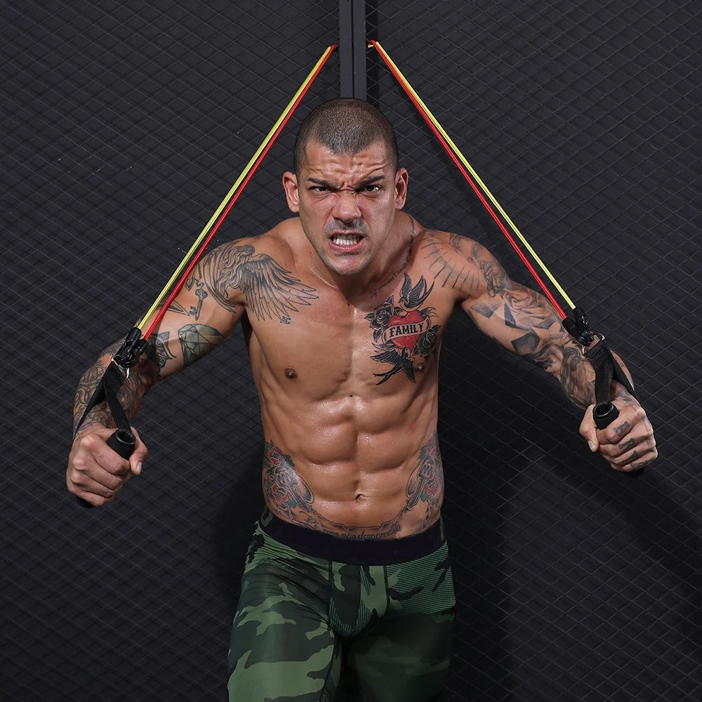 This 11-piece resistance band kit gives you a full workout without needing a gym. Each tube band offers a different level of tension, and you can combine them for heavier resistance. The set includes handles, ankle straps, and a door anchor so you can train your arms, chest, back, legs, and core from one place.